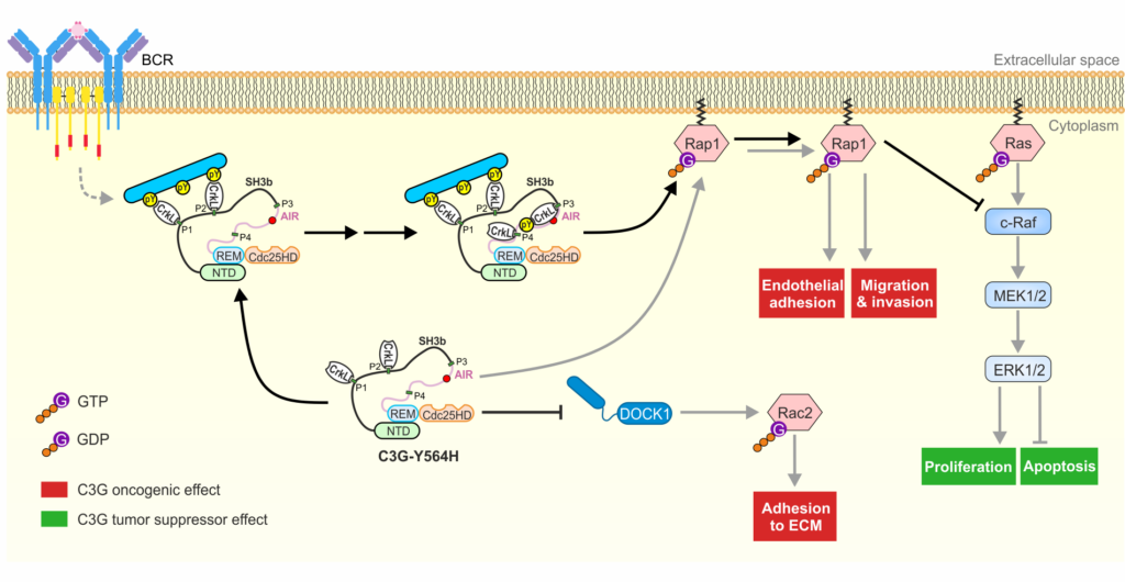 Mediante esta investigación se ha descubierto que la proteína C3G (RapGEF1) desempeña un papel dual en el linfoma de células B, un tipo de cáncer hematológico. Mientras su hiperactivación limita la proliferación de las células tumorales, al mismo tiempo aumenta su capacidad migratoria y metastásica.